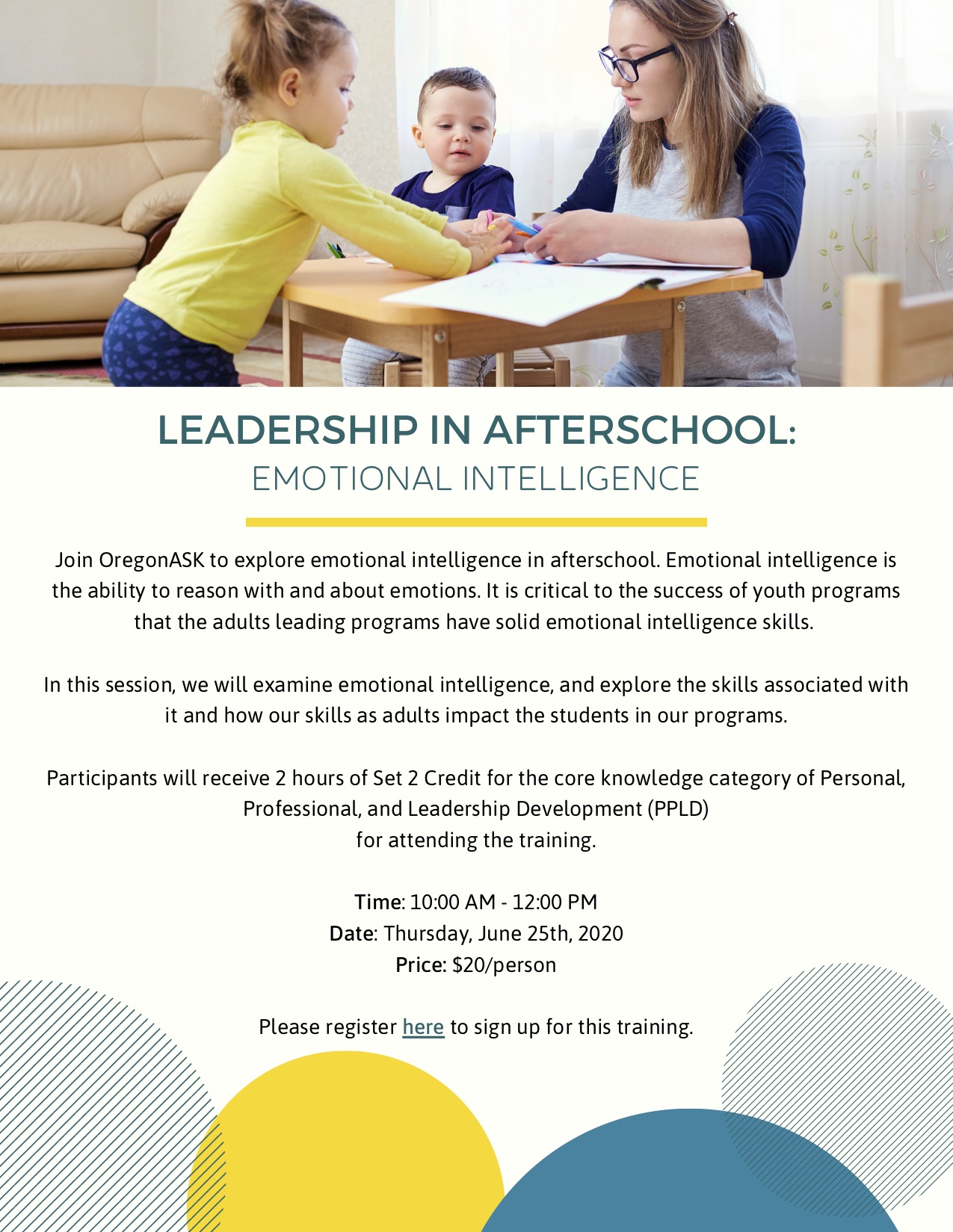 Emotional Intelligence is the ability to reason with and about emotions. It is critical to the success of youth programs that the adults leading programs have solid emotional intelligence skills. In this session we will examine emotional intelligence, and explore the skills associated with it and how our skills as adults impact the students in our programs.